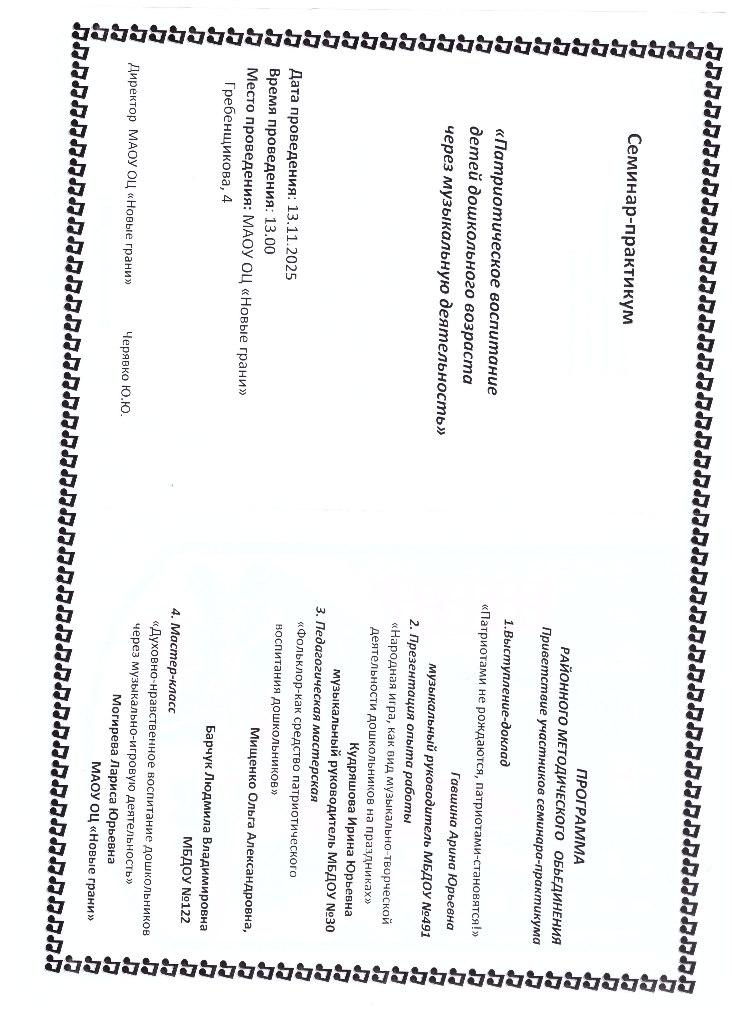 (МБДОУ №471. 4 ч.часов. Форма обучения: Семинар- практикум РМО, очная. Направленность: методика преподавания предмета).